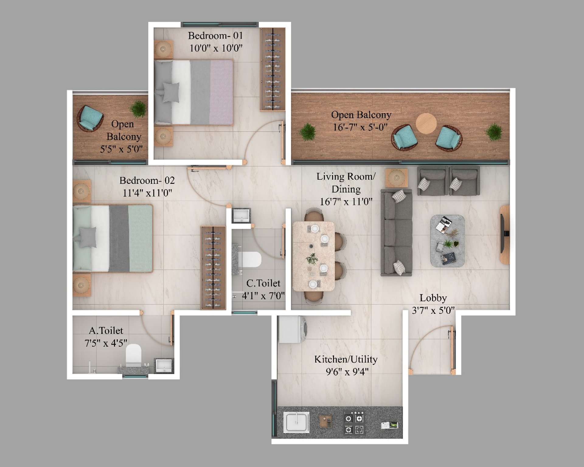 Our 2 BHK flats in Ravet are designed to provide maximum space utilization, ample natural light, and excellent ventilation. Every home reflects modern architecture that enhances the living experience.